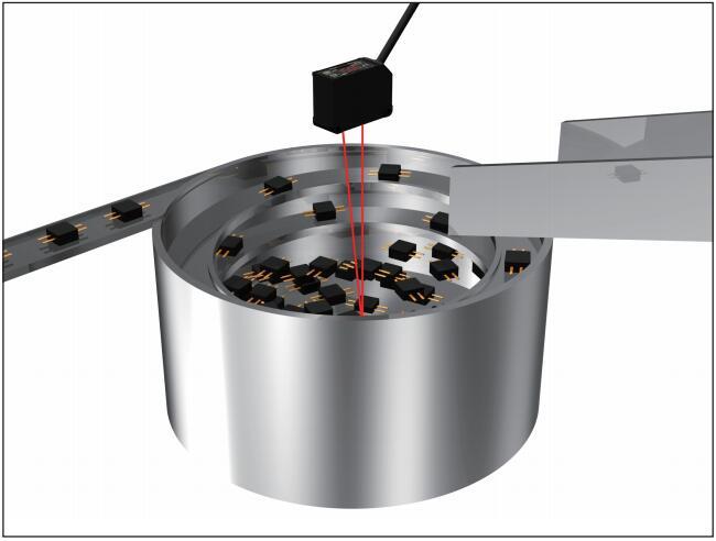 | 振動盤的物料檢測 (1CH:物料剩餘量較少時開始補給; 2CH:剩餘量較多時停止補給) |