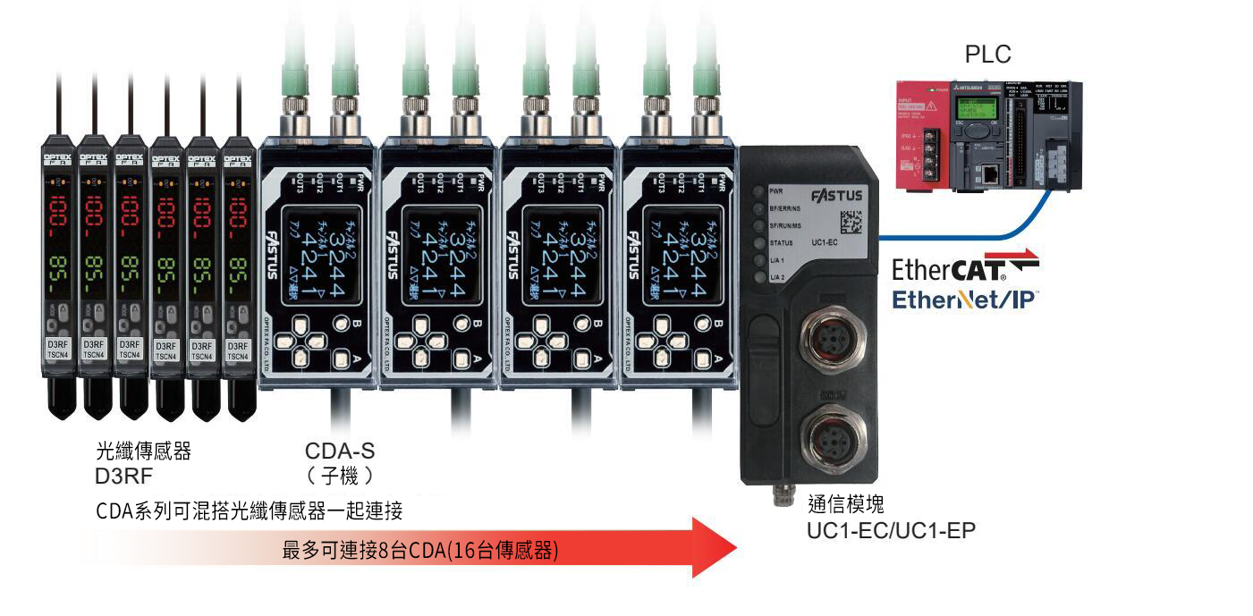 - 通訊支援:可透過 UC1 系列連接 CC-Link,實現感測器資訊可視化。