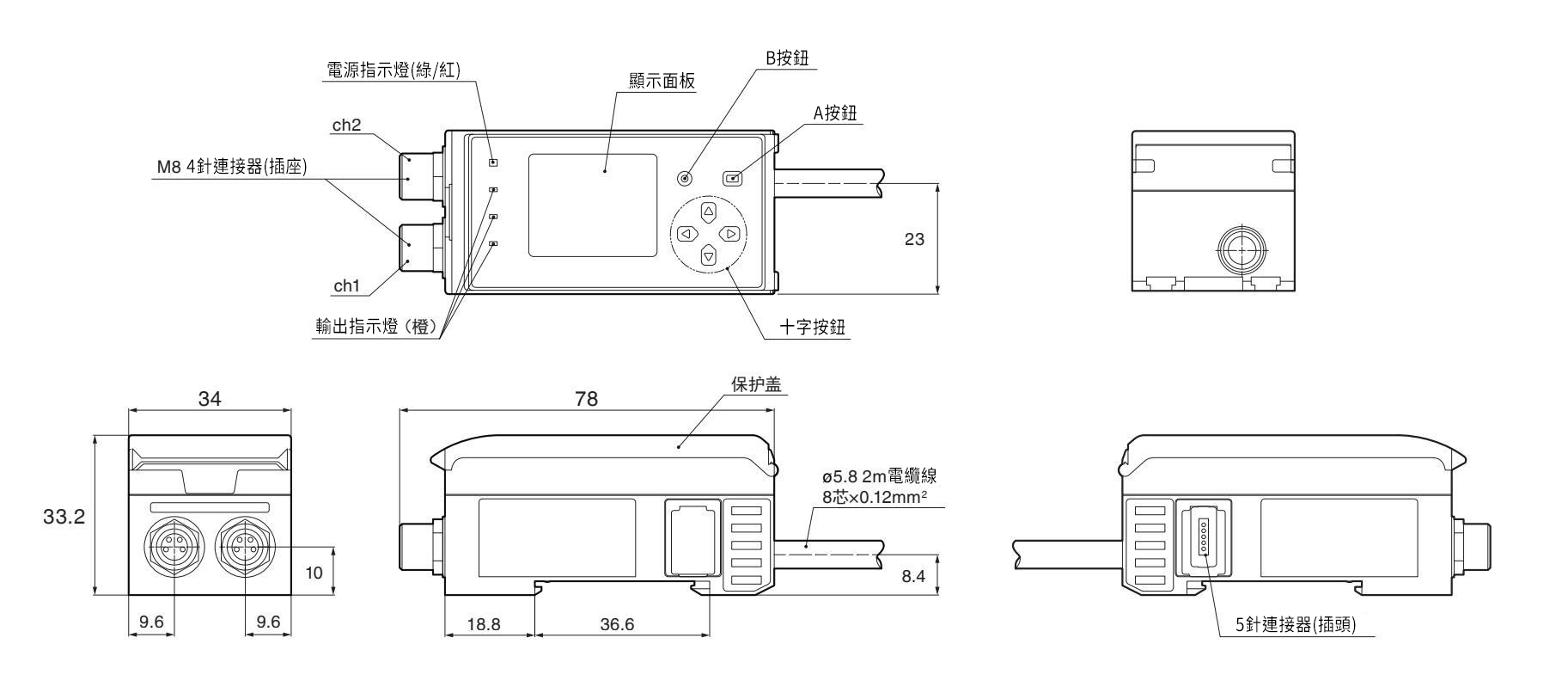 | 連接方式 | 電纜式:2m電纜線φ5.8mm | |