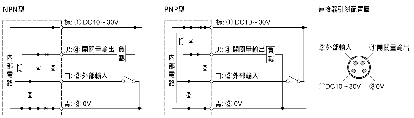 | 控制輸出 | NPN/PNP,集極開路 ,最大電流 100 mA/30 VDC,殘餘電壓 1.8 V 或更低 |