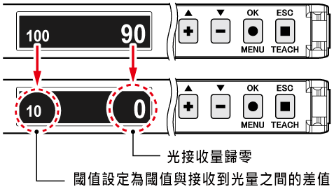 例如,當您想要將參考接收到的光量設為零,或想將「無物體存在」設為零但實際接收到的光量不為零時,可以使用此功能。
