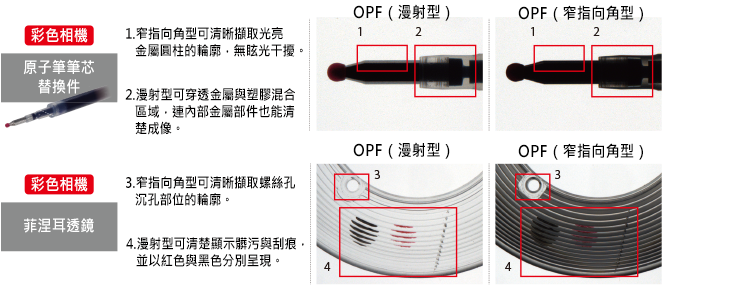 - 漫射型:高均勻性光源,亮度提升 2.5 倍,適合檢測散射材質異物。