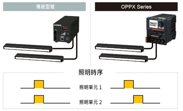 即使連接多個照明單元,也無法分別控制每個照明單元的光強度值和照明時間。 OPPX