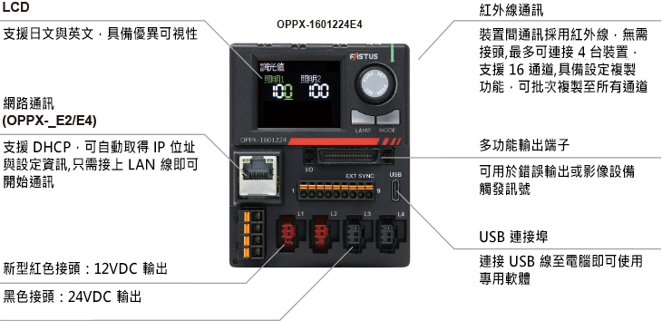 系列產品允許為每個照明單元單獨設定光強度值和照明時間,即使在多個偵測工序中使用多個照明單元,也能透過單一控制器(最大功率:200W)進行控制。