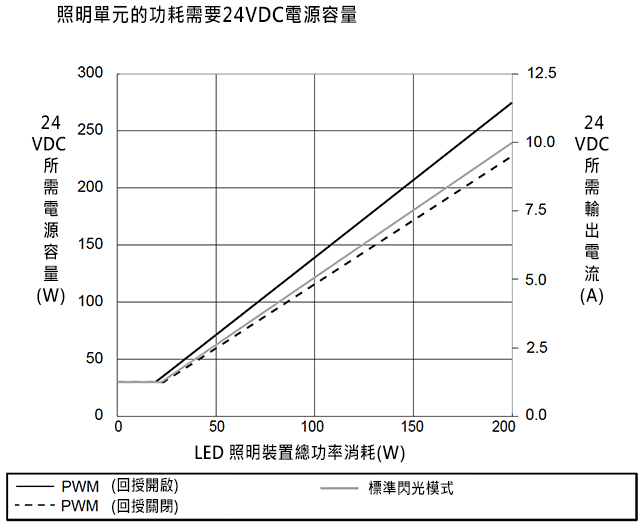 照明單元的功耗需要24VDC電源容量
