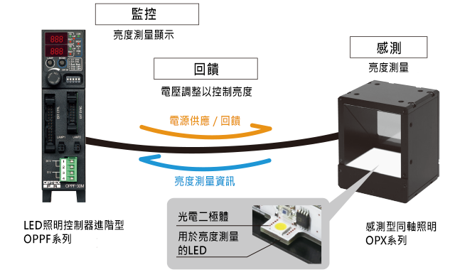 在同軸照明中,光源發出的光線兩次穿過半反射鏡,導致到達攝影機的光亮度僅為原亮度的四分之一甚至更低。因此,對於亮度需求更高的應用,子彈形LED已成為主流選擇。 OPX